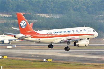 图为发生故障后准备降落成都双流国际机场的川航3U8633。 万 赑摄(新华社发)