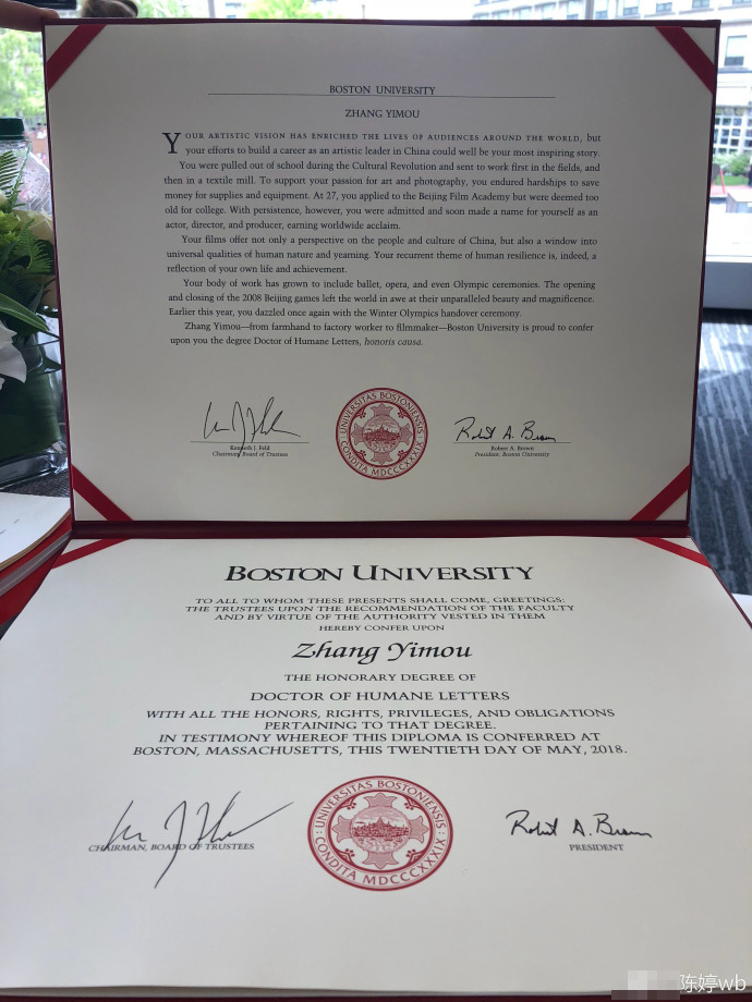 张艺谋获波士顿大学博士学位 手拿毕业证喜笑颜开