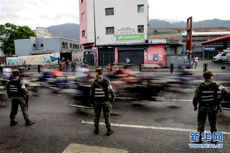 5月20日,军警在委内瑞拉加拉加斯的一处投票点附近执勤。 委内瑞拉20日举行总统选举投票,选举结果预计当晚揭晓。 新华社发(鲍里斯摄)