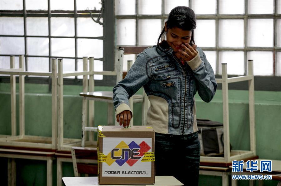 5月20日,一名女子在委内瑞拉加拉加斯的一处投票点投票。 委内瑞拉20日举行总统选举投票,选举结果预计当晚揭晓。 新华社发(鲍里斯摄)