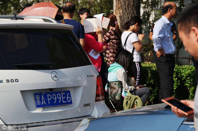 2018年5月19日,停放在天津市河西区行政许可服务中心门外的外地牌照汽车。