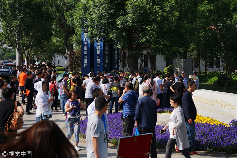2018年5月19日,天津市河西区行政许可服务中心院外排起的长队。