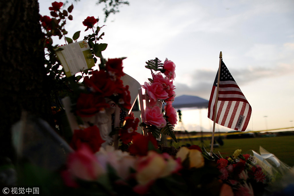 美国民众献花悼念得州高中枪击案遇难者
