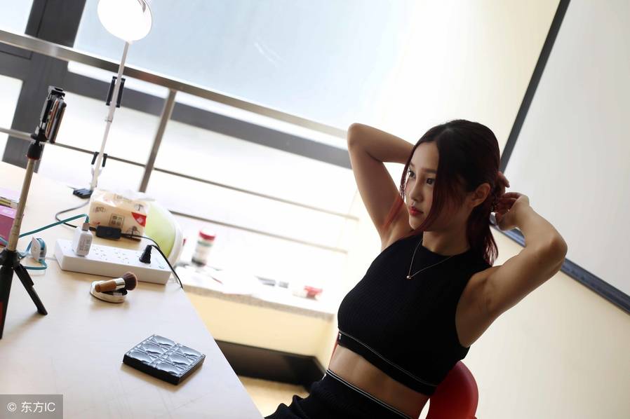 上海。直播开始前,Rita会提前至少半个小时到直播室做准备,化妆、换衣服。(图片来自东方IC)