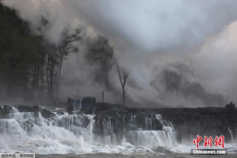 夏威夷火山熔岩奔涌入海 场面壮观烟雾升腾