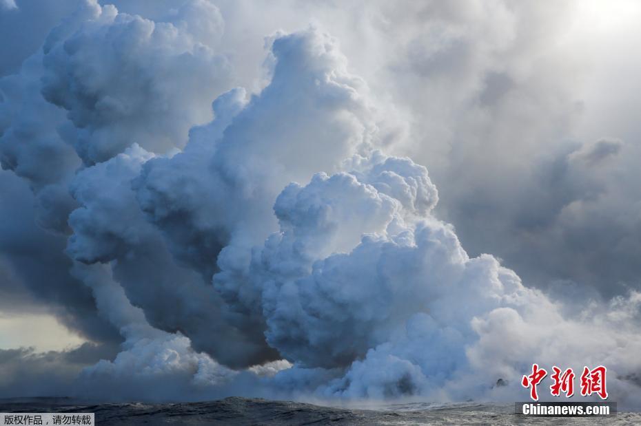 夏威夷火山熔岩奔涌入海 场面壮观烟雾升腾