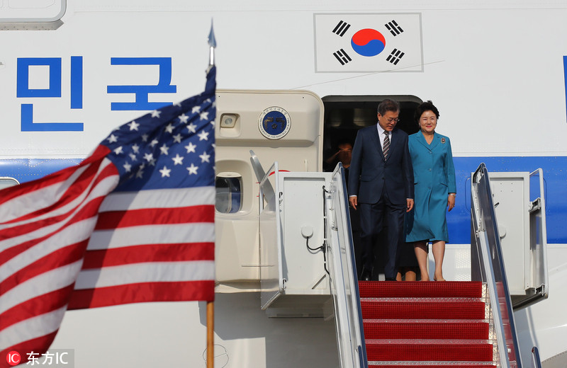 文在寅夫妇抵美访问 “第一夫人”下飞机小心翼翼