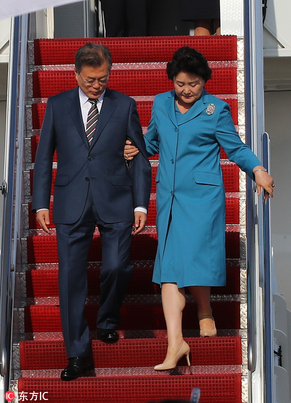 文在寅夫妇抵美访问 “第一夫人”下飞机小心翼翼