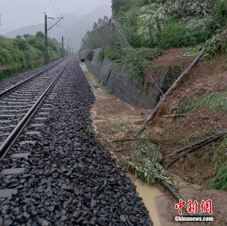 成昆铁路路基边坡出现泥石流灾害。 钟欣 摄