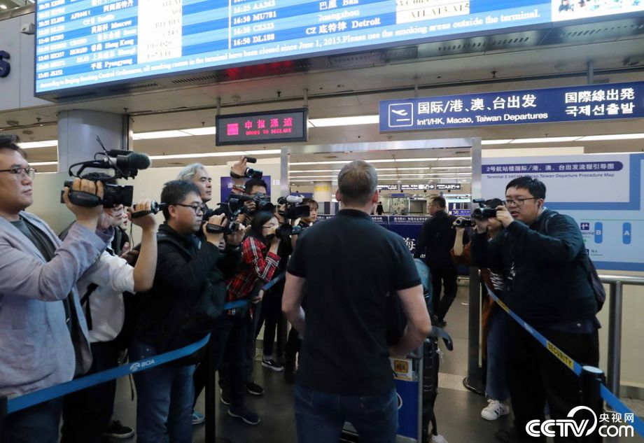 2018年5月22日上午,北京,来自中、美、英等多个国家的受邀媒体记者按照朝鲜要求,在北京首都机场集合,准备乘坐朝鲜提供的专机前往朝鲜北部核试验场采访。 视觉中国