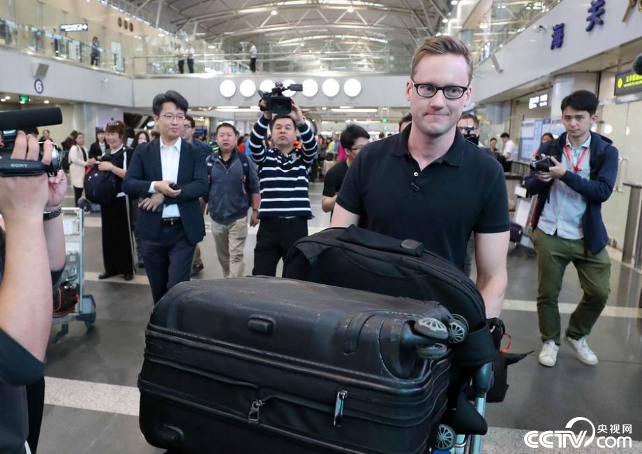 2018年5月22日上午,北京,来自中、美、英等多个国家的受邀媒体记者按照朝鲜要求,在北京首都机场集合,准备乘坐朝鲜提供的专机前往朝鲜北部核试验场采访。 视觉中国