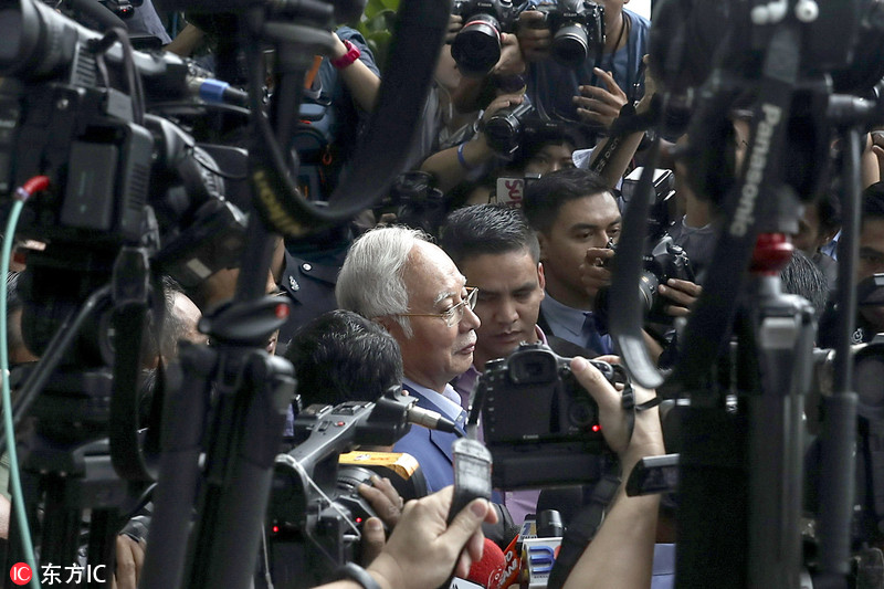 马来西亚前总理纳吉布接受反腐调查 遭长枪短炮围堵