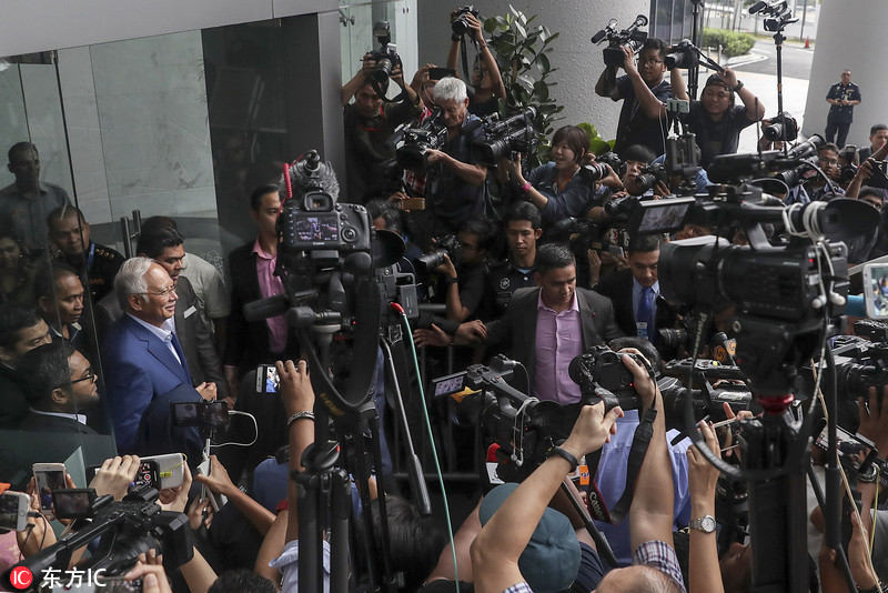 马来西亚前总理纳吉布接受反腐调查 遭长枪短炮围堵