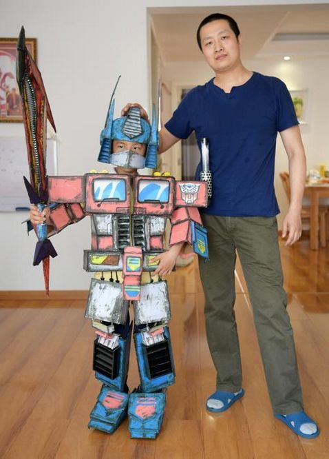 西安80后老爸为儿子纯手工打造"变形金刚"盔甲