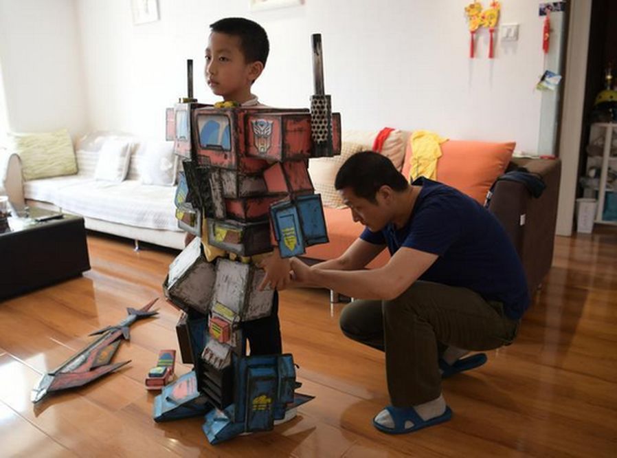 西安80后老爸为儿子纯手工打造"变形金刚"盔甲