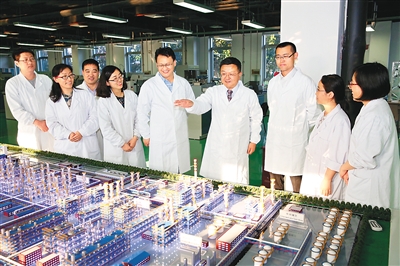 图为在北京全国科创中心怀柔科学城,学成归国的中科合成油技术有限公司总经理、首席科学家李永旺(右四)和他的研究团队在一起讨论。如今,中科合成油与神华集团合作投产成功煤制油项目,已居世界全面领先地位。新华社记者 金立旺摄