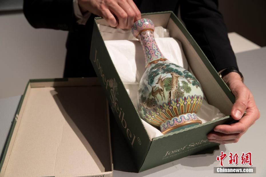 当地时间5月22日,一件罕见的乾隆时期皇家瓷瓶展出,它将于6月在法国巴黎苏富比拍卖。据了解,该藏品在原主人阁楼的鞋盒中放置了数十年。