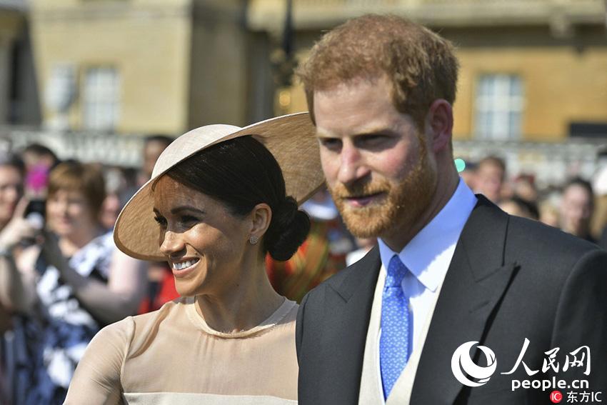 人民网讯 当地时间2018年5月22日,英国伦敦,白金汉宫举办花园派对庆祝查尔斯王子70岁生日,刚刚完婚的哈里王子偕王妃梅根出席。