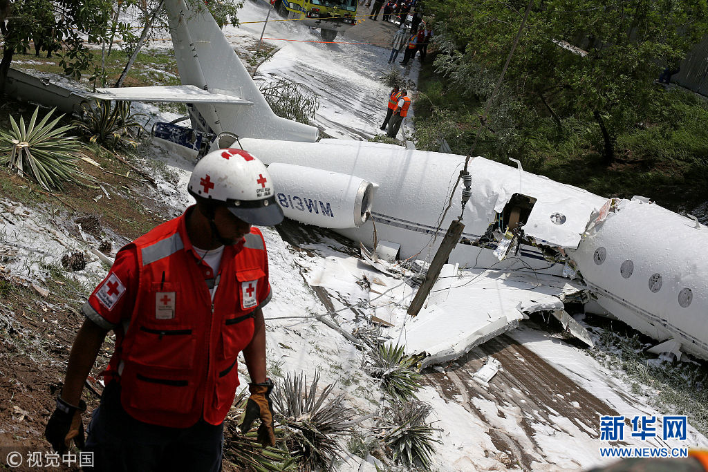 5月22日,洪都拉斯特古西加尔巴,一架Gulfstream G200飞机在通孔廷国际机场降落时滑出跑道,机身损毁严重。(图片来源:视觉中国)