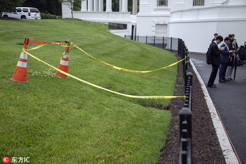 当地时间2018年5月22日,美国华盛顿,白宫北草坪惊现天坑。