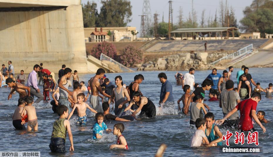 高温笼罩叙利亚 拉卡民众跃入河水中避暑