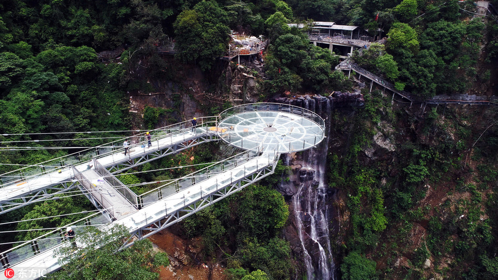 近日,广东清远古龙峡景区正式向外公布,其投资上亿元的悬空玻璃天台、玻璃峡谷、玻璃桥顺利完成了铺装,即将向市场与游客开放。现向全世界为玻璃系列项目征集名字,并着手申报世界吉尼斯纪录。曾令华/东方IC