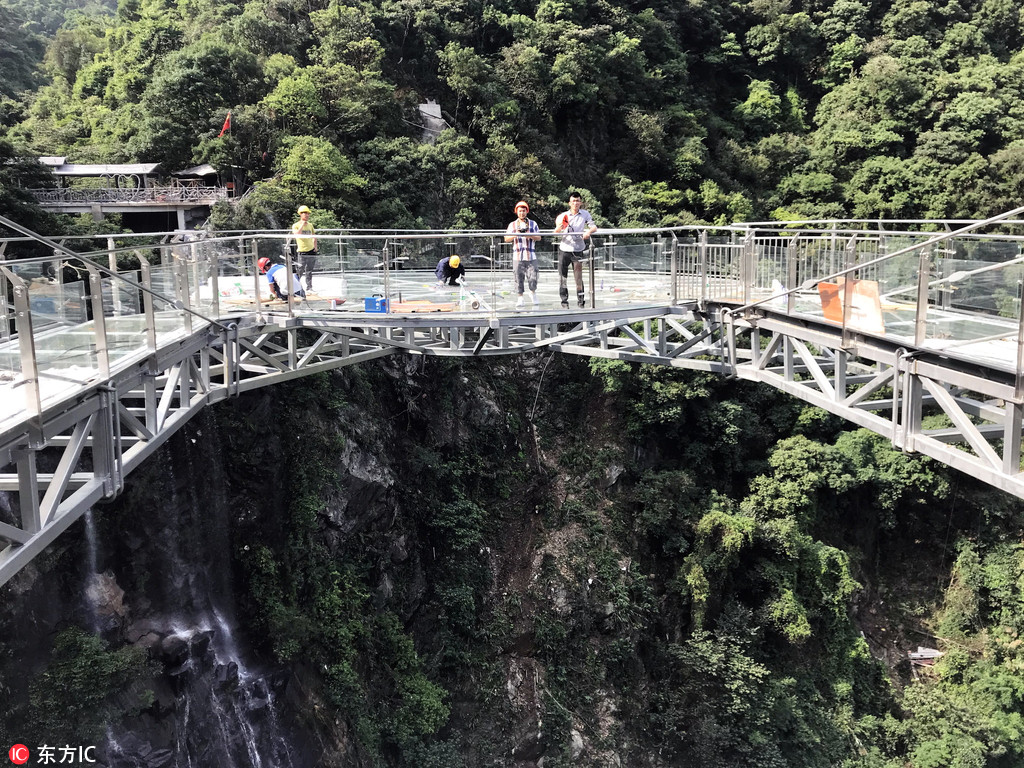 近日,广东清远古龙峡景区正式向外公布,其投资上亿元的悬空玻璃天台、玻璃峡谷、玻璃桥顺利完成了铺装,即将向市场与游客开放。现向全世界为玻璃系列项目征集名字,并着手申报世界吉尼斯纪录。曾令华/东方IC