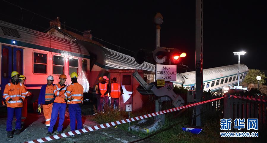 这是5月24日在意大利西北部皮埃蒙特地区拍摄的事故现场。据意大利消防部门24日公布的信息,23日晚发生在意大利西北部皮埃蒙特地区的火车与货车相撞事故,至少造成2人死亡、23人受伤。新华社发