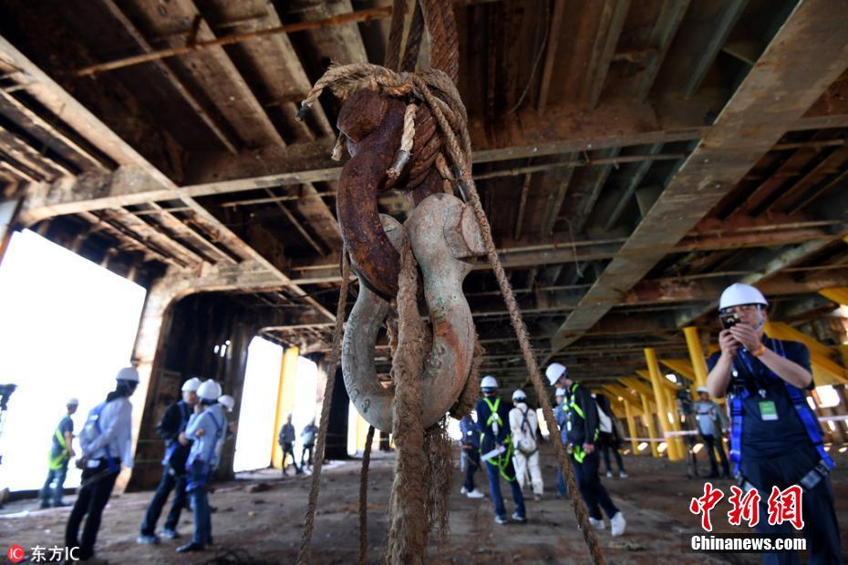 当地时间5月24日在韩国全罗南道木浦新港码头拍摄的“世越”号沉船内部景象。“世越”号沉船船体调查委员会24日组织记者走进船体内部采访。2014年4月16日,载有476人的“世越”号客轮在韩国全罗南道珍岛郡屏风岛以北海域意外进水并沉没。船体出水打捞作业于2017年4月完成。 图片来源:东方IC 版权作品 请勿转载
