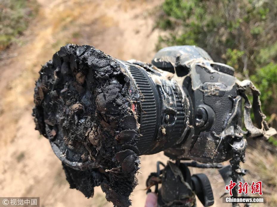 5月24日消息,NASA摄影师Bill Ingalls在近距离拍摄火箭发射过程时,把自己的佳能5Ds相机放在了尽可能接近发射台的位置进行遥控拍摄,结果不巧正好被一束窜出的火苗击中,整台相机面目全非。 图片来源:视觉中国
