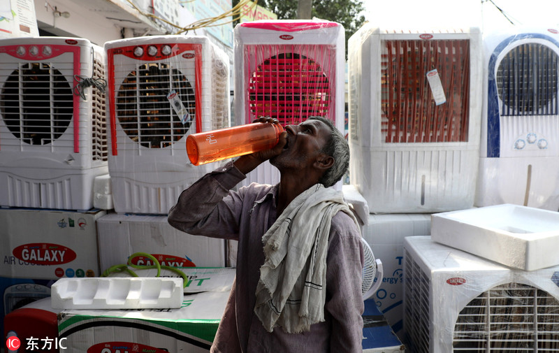当地时间2018年5月24日,印度新德里,印度北部遭遇持续热浪袭击,当天最高温度突破45℃。