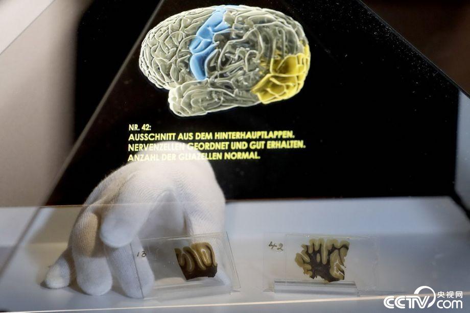 当地时间2018年5月22日,德国明斯特,当地博物馆展出著名物理学家艾伯特 爱因斯坦的大脑切片。 视觉中国