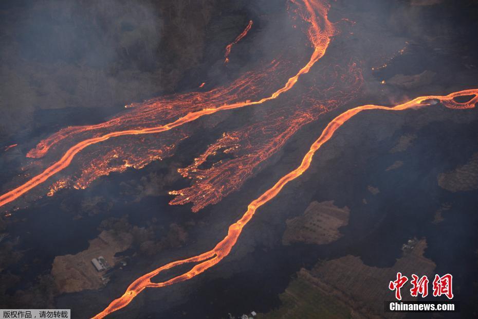 夏威夷基拉韦厄火山持续喷发 熔岩如“火龙”川流不息