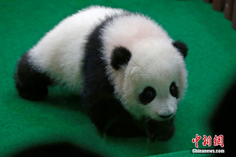 马来西亚新生大熊猫宝宝首亮相 小爪爪抱脑袋表情萌化