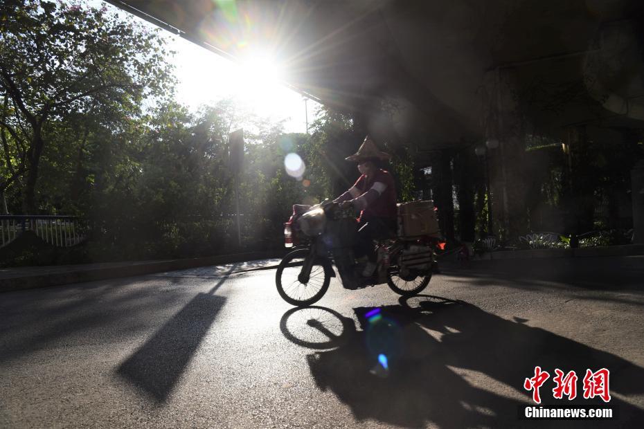 5月25日,广西柳州市高温来袭,不少顶着烈日出行的市民给自己穿上了“捂装”。近两日来,广西多地发布今年首个高温黄色预警,气温纷纷飙升至35摄氏度。根据广西气象部门介绍,今年的高温来的相对较早,但是受即将到来的受冷空气影响,气温在未来一个星期内将会小幅度下降。 王以照 摄