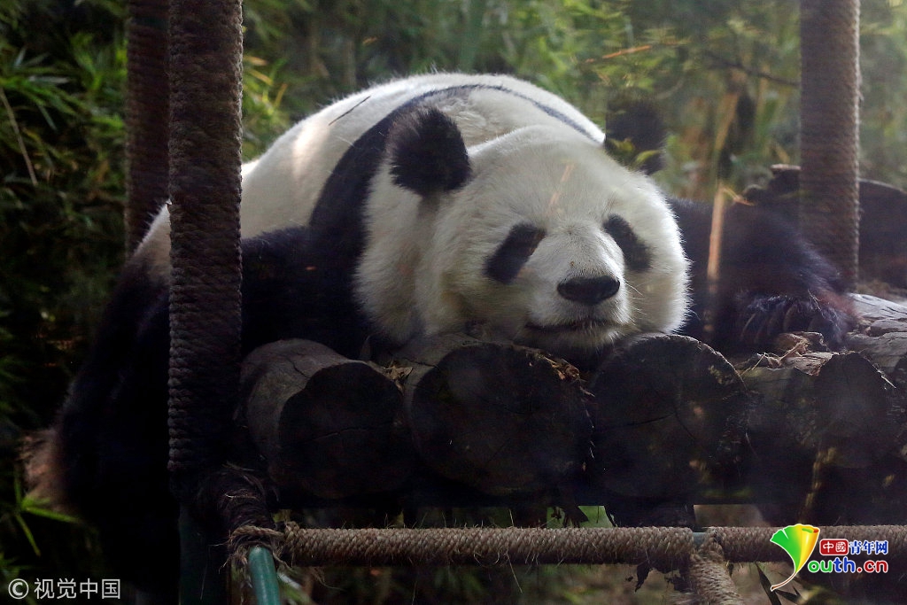 当地时间2018年5月25日,墨西哥墨西哥城,查普特佩克动物园中的大熊猫“双双”。