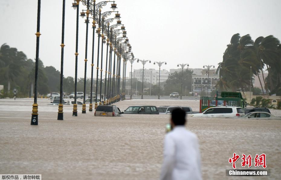 飓风“梅库拉”登陆阿曼 街道汽车被淹只露车顶