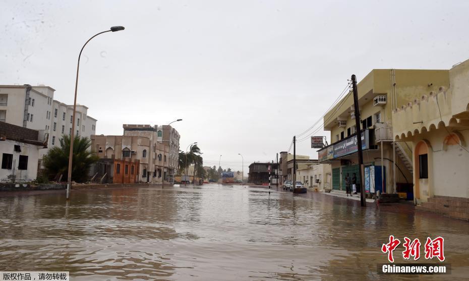 当地时间2018年5月26日,阿曼塞拉莱,强台风“梅库拉”(Mekunu)登陆阿曼,当地街道被淹。