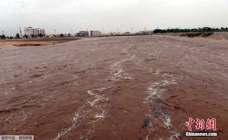 当地时间2018年5月26日,阿曼塞拉莱,强台风“梅库拉”(Mekunu)登陆阿曼,当地街道被淹。