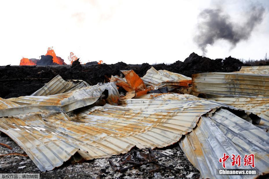 夏威夷基拉韦厄火山持续喷发 岩浆奔涌吞没住宅