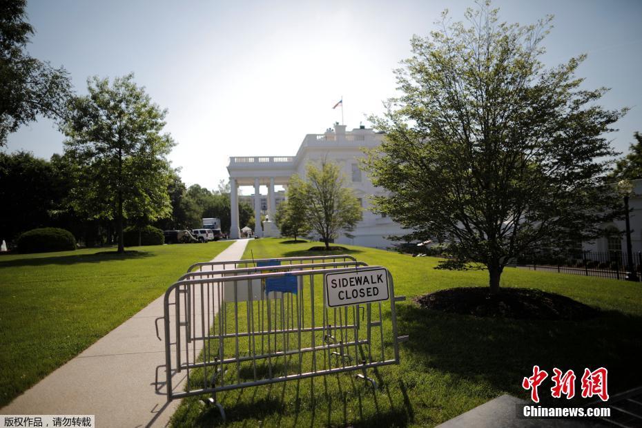 当地时间5月25日,美国华盛顿,工人修理白宫北草坪出现的一处天坑。