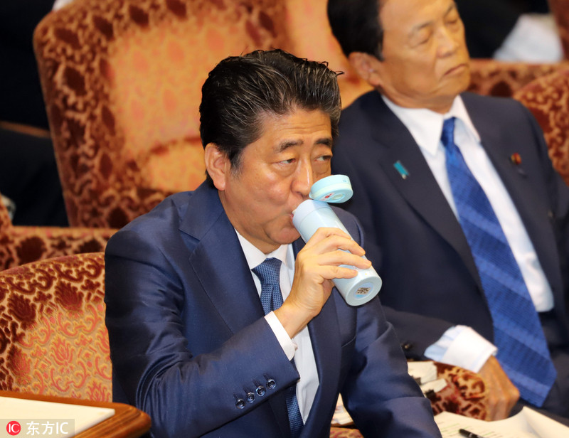 当地时间2018年5月28日,日本东京,日本首相安倍出席参院预算委员会会议。