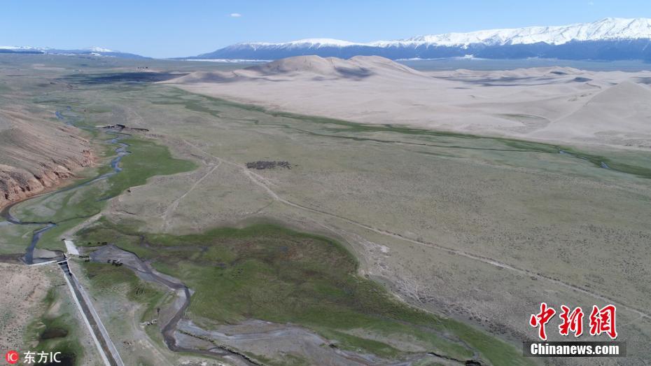 ​近日,新疆哈密,哈密鸣沙山位于哈密市79千米处,是一个神奇的地方,四周被口门子大草原包围,柳条河蜿蜒从其北侧流过,蜿蜒起伏,在沙丘中间还有绿洲和沙棘林生存。 图片来源:东方ic 版权作品 请勿转载