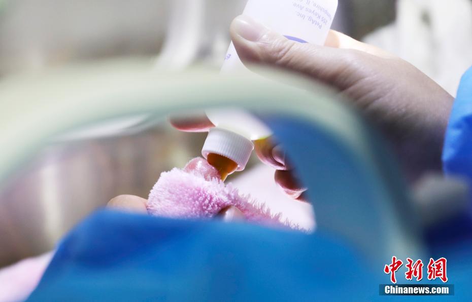 新生大熊猫“兰萌”喝奶。 钟欣 摄