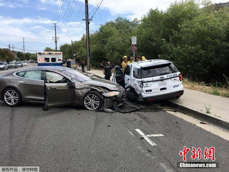 当地时间2018年5月29日,美国加州拉古纳海滩,一辆处于自动驾驶模式的特斯拉轿车撞上了停泊的当地警车。据当地公共信息官员吉姆·科塔(Jim Cota)说,在周二早上发生的撞车事故中,特斯拉司机受了轻伤。事故发生时,警车里并没有警察。