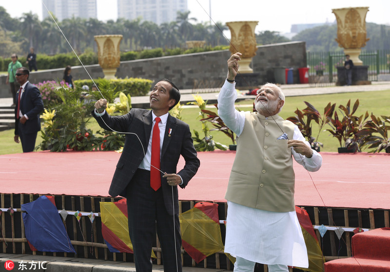印度总理莫迪访问印尼 与佐科一起开心放风筝