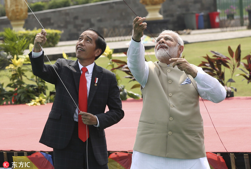 印度总理莫迪访问印尼 与佐科一起开心放风筝