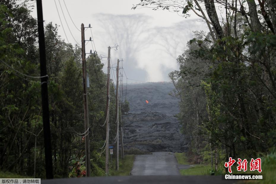 远远望去,堆积起来的熔岩好似一座小山丘,阻断了公路。