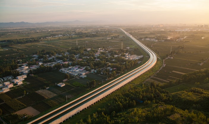 图为位于河南省平顶山的南水北调中线工程中世界上规模最大的渡槽工程——沙河渡槽