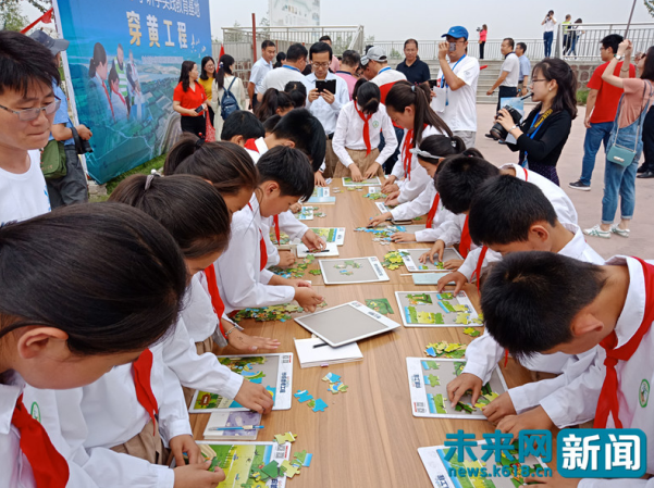小学生们正在南水北调中线穿黄工程全国中小学生实践教育基地拼图 未来网记者 刘文静 摄。